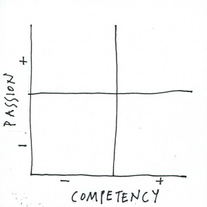 SOMETHING TO DO: Try making out a list of the roles and activities that fill your life under the following headings and see what you come up with. Draw a large graph in which x = competency and y = passion.