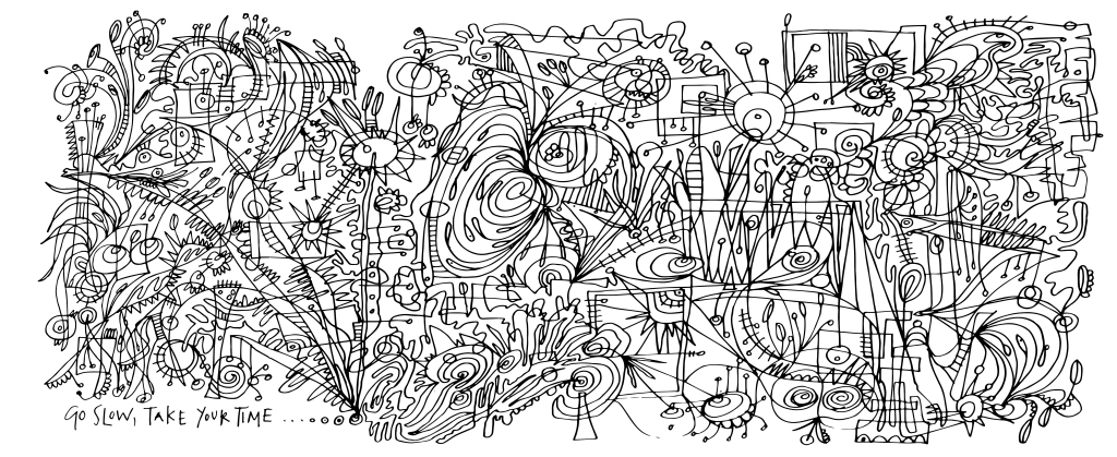 The first doodle Go slow, take your time echoes the sentiment of Donovan Leitch’s Little Church, in turn echoing words attributed to St Francis of Assisi.